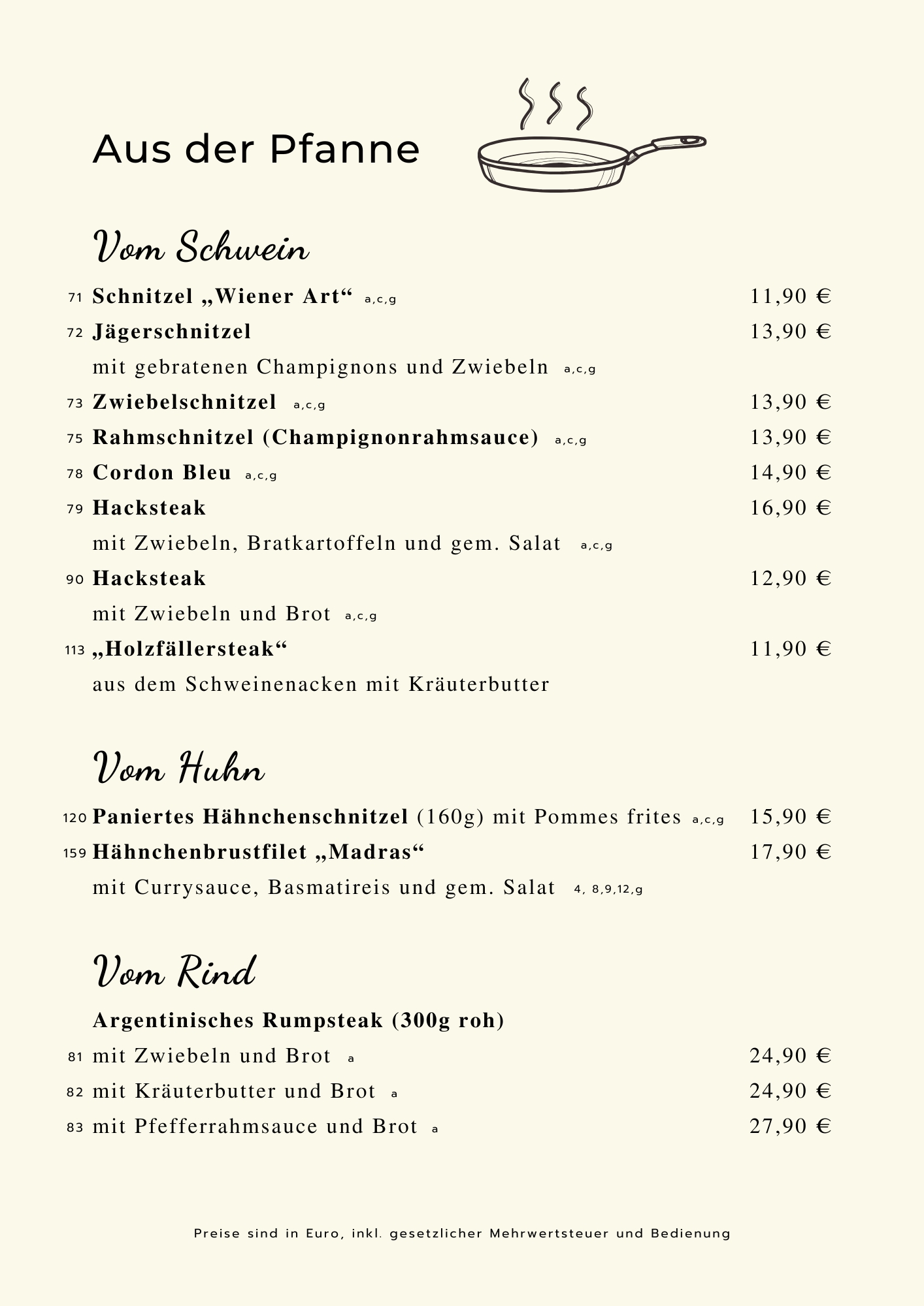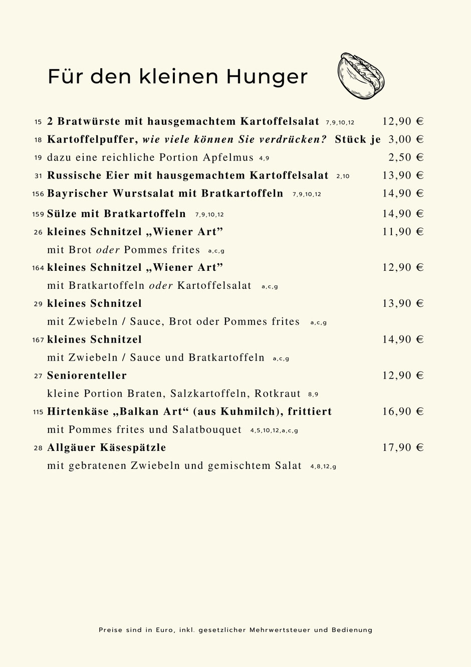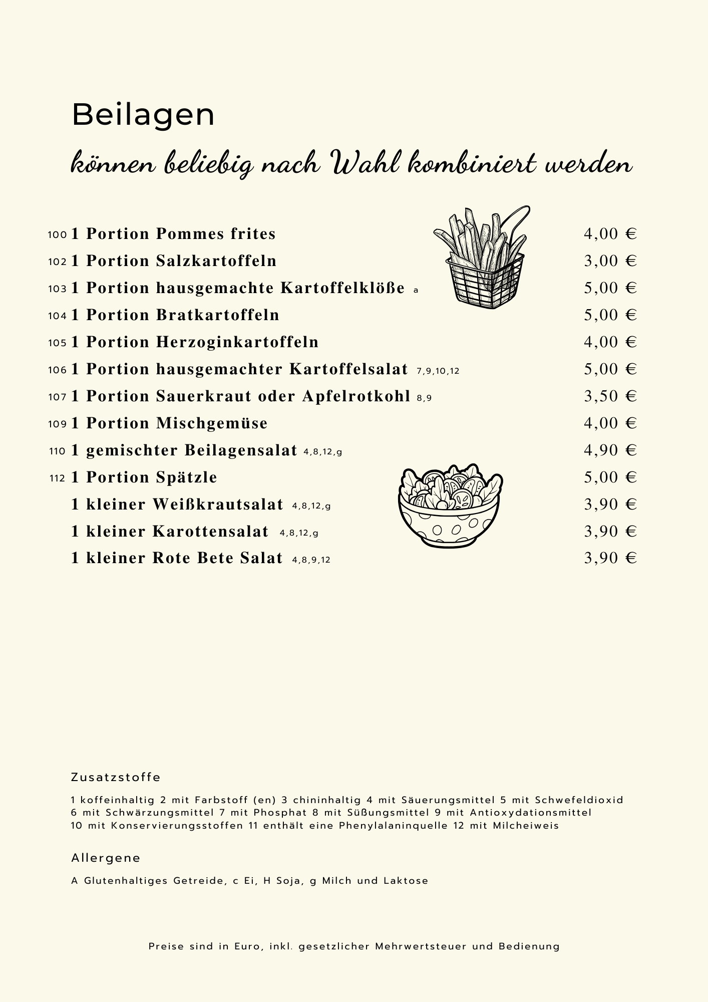 Sie können zu allen Gerichten Ihre Beilagen frei wählen ,