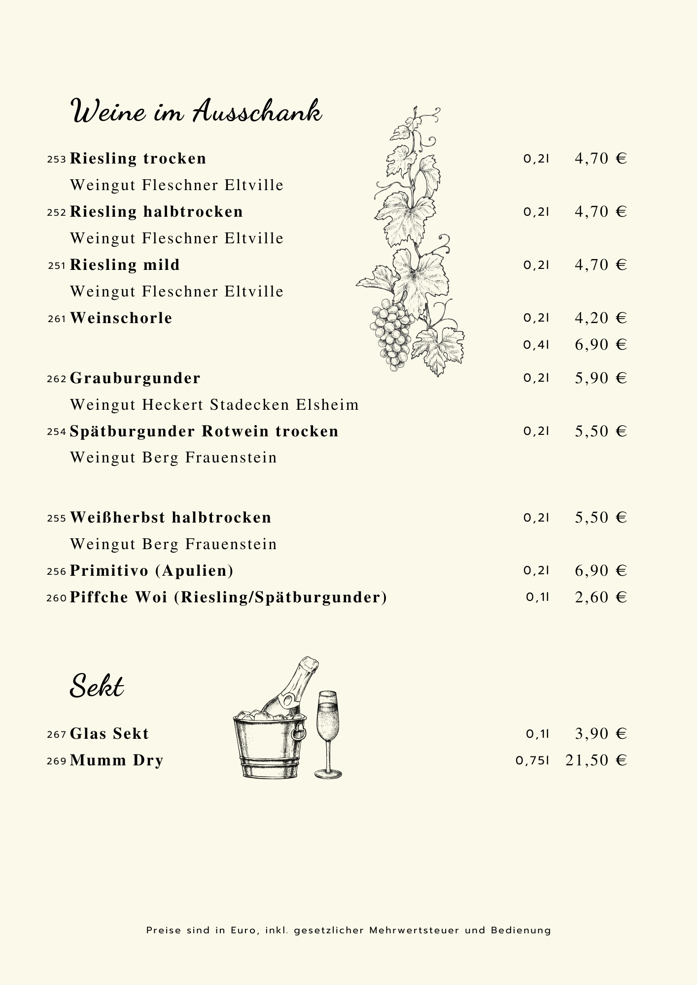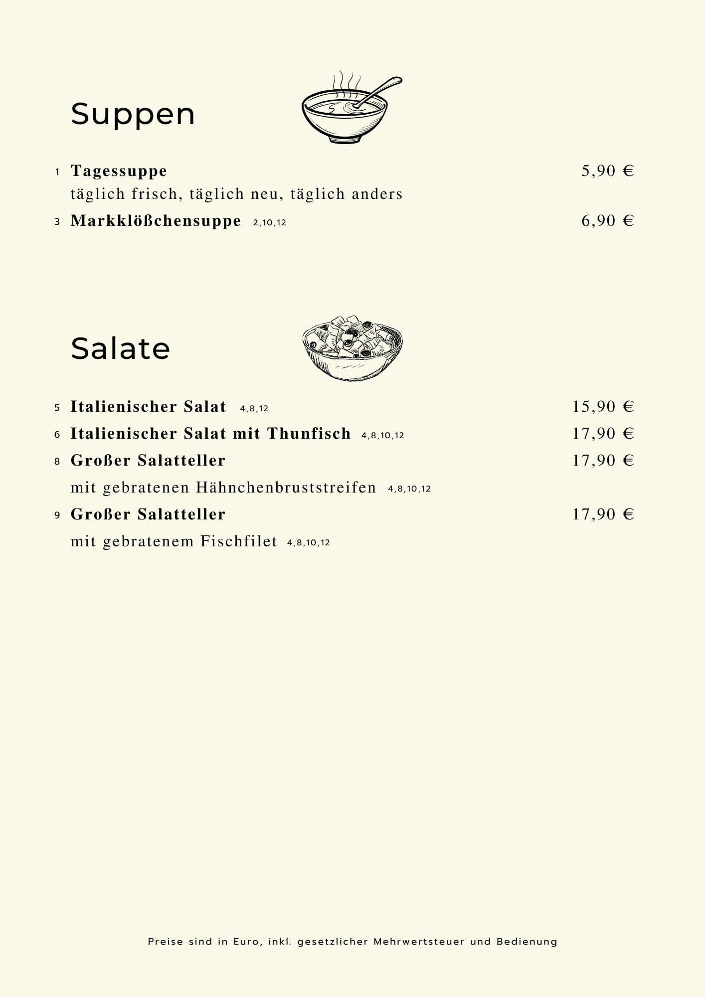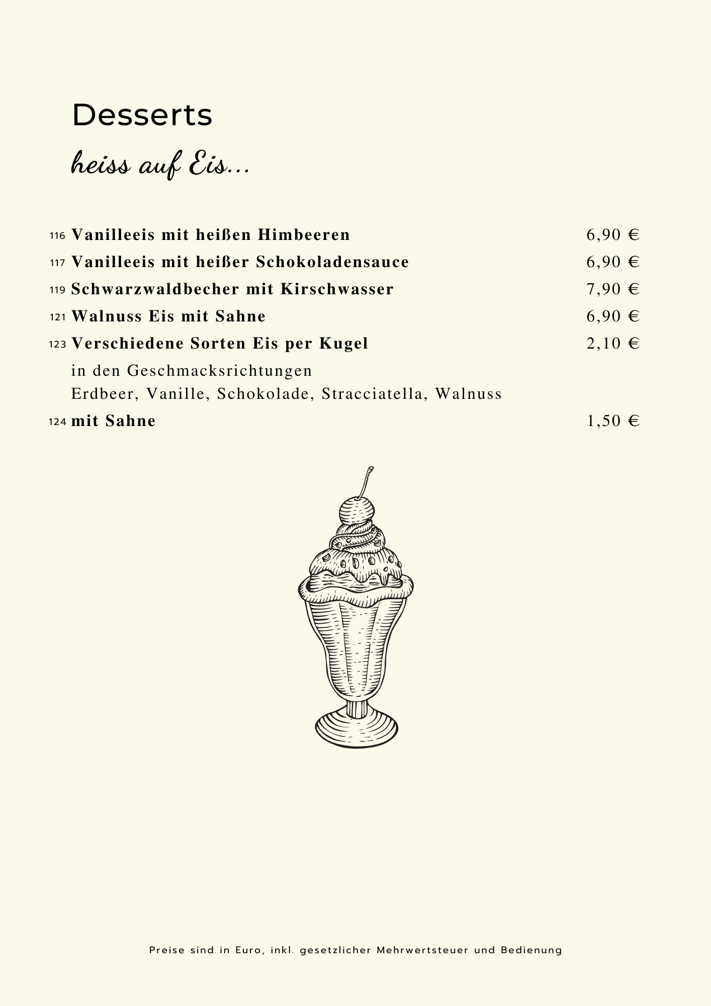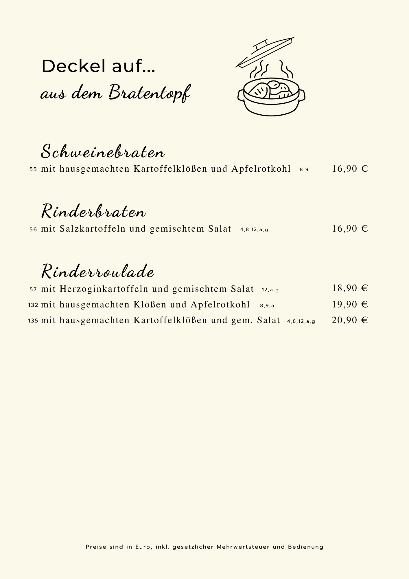 Sie können zu allen Gerichten Ihre Beilagen frei wählen ,