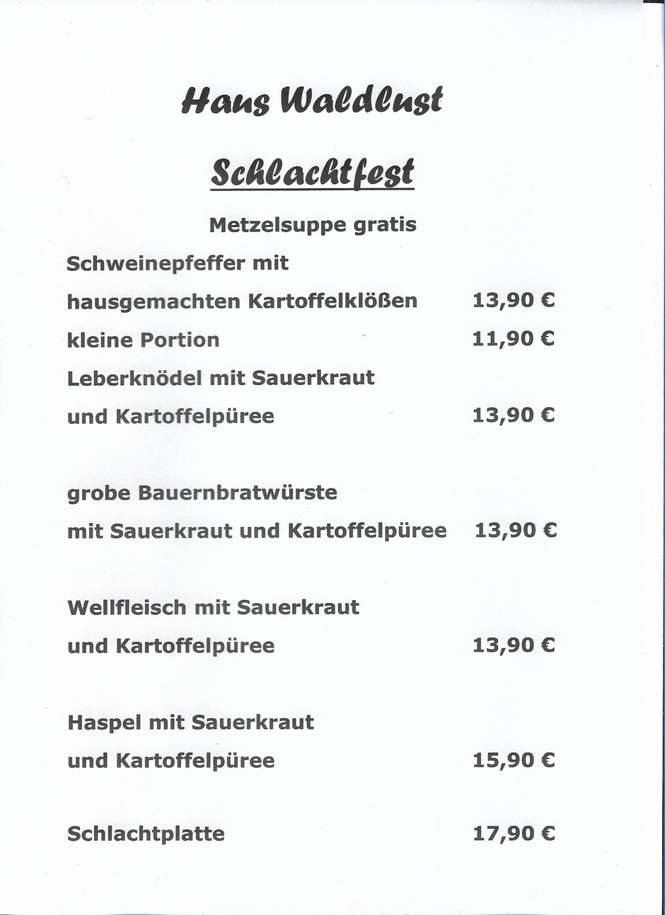 Das Schlachtfest ist von September bis Mai